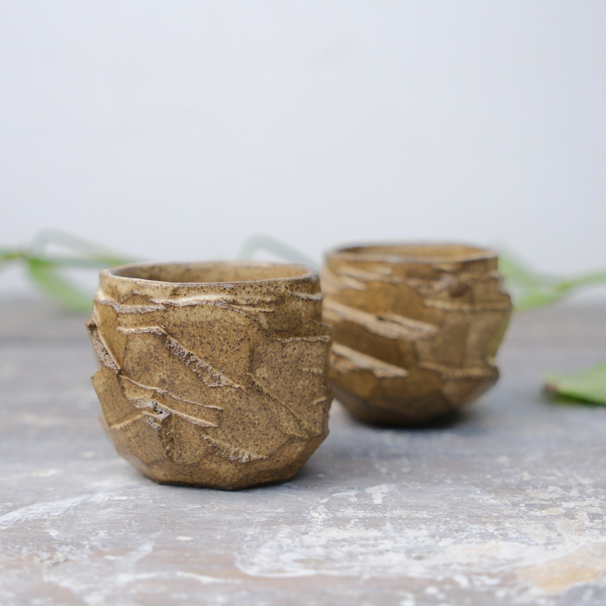 Κουπάκι espresso φτιαγμένο στο χέρι από γκρι stoneware πηλό με τη παραδοσιακή ιαπωνική τεχνική kurinuki. Ψήνεται στους 1270 °C με αποτέλεσμα να αποκτά μεγάλη αντοχή και να είναι 100% food-safe.