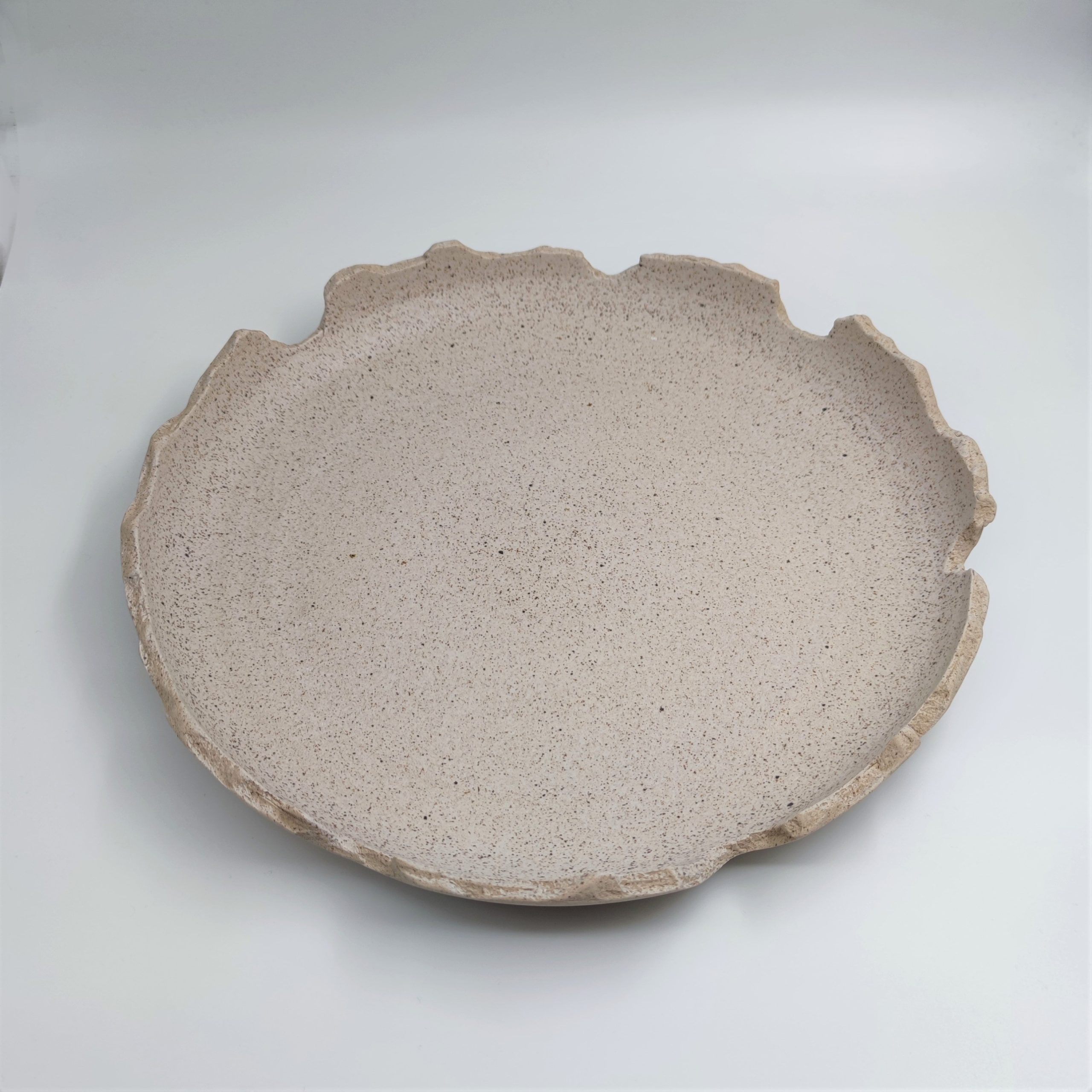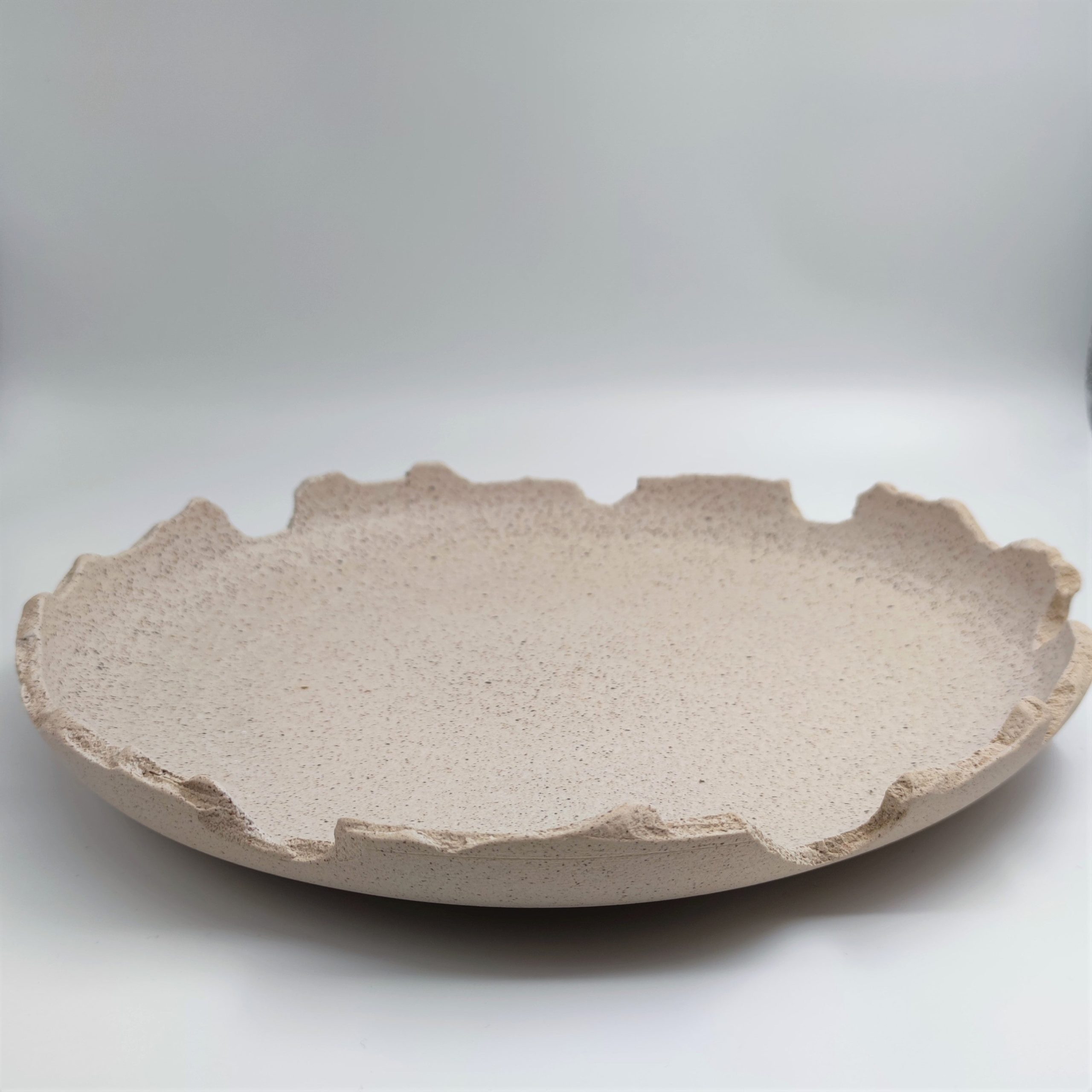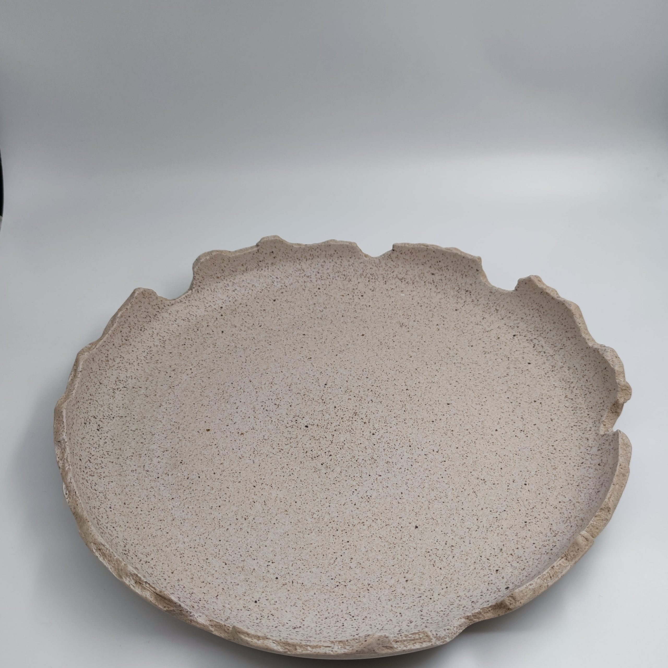 Πιατέλα φτιαγμένη στο χέρι από μπεζ stoneware πηλό. Ψήνεται στους 1270 °C με αποτέλεσμα να αποκτά μεγάλη αντοχή και να είναι 100% food-safe.