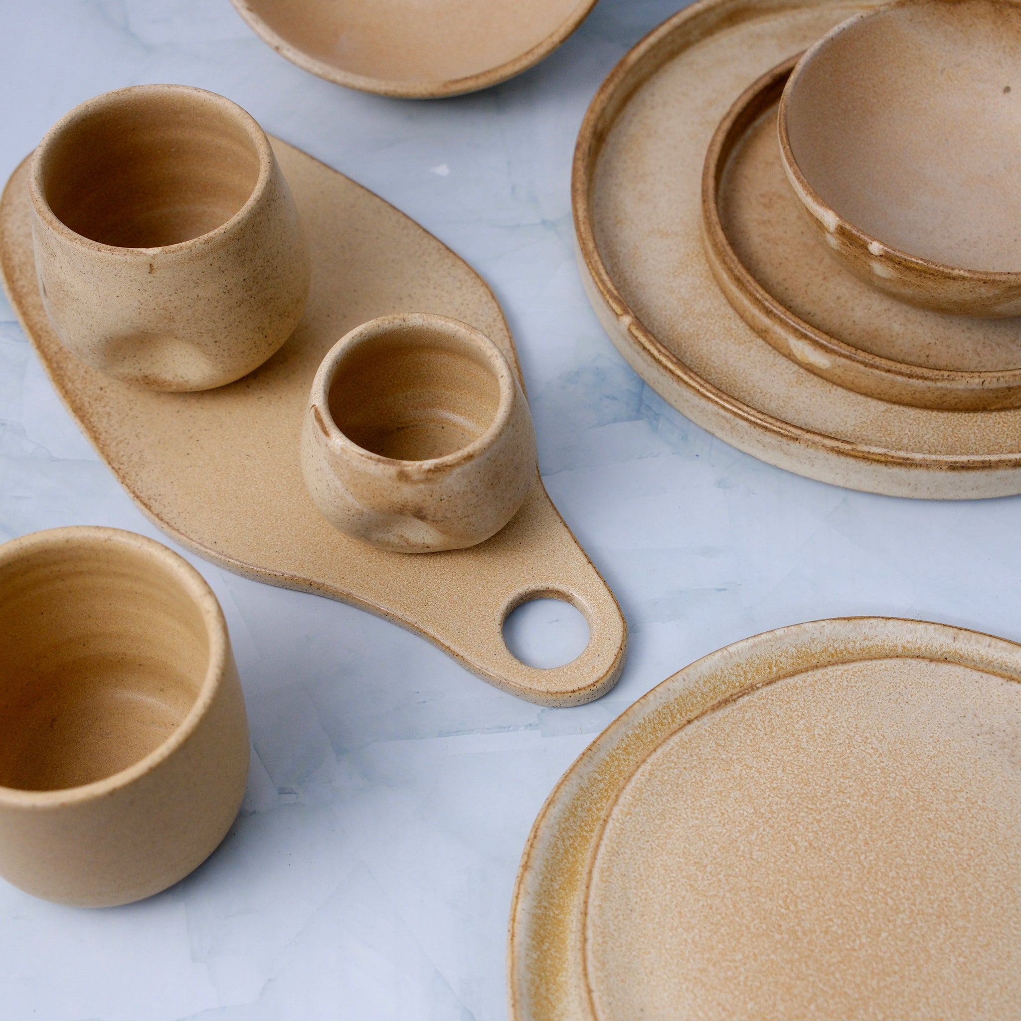 Κεραμικό πλατώ σερβιρίσματος φτιαγμένο στο χέρι από μπεζ stoneware πηλό. Ψήνεται στους 1270 °C με αποτέλεσμα να αποκτά μεγάλη αντοχή και να είναι 100% food safe .