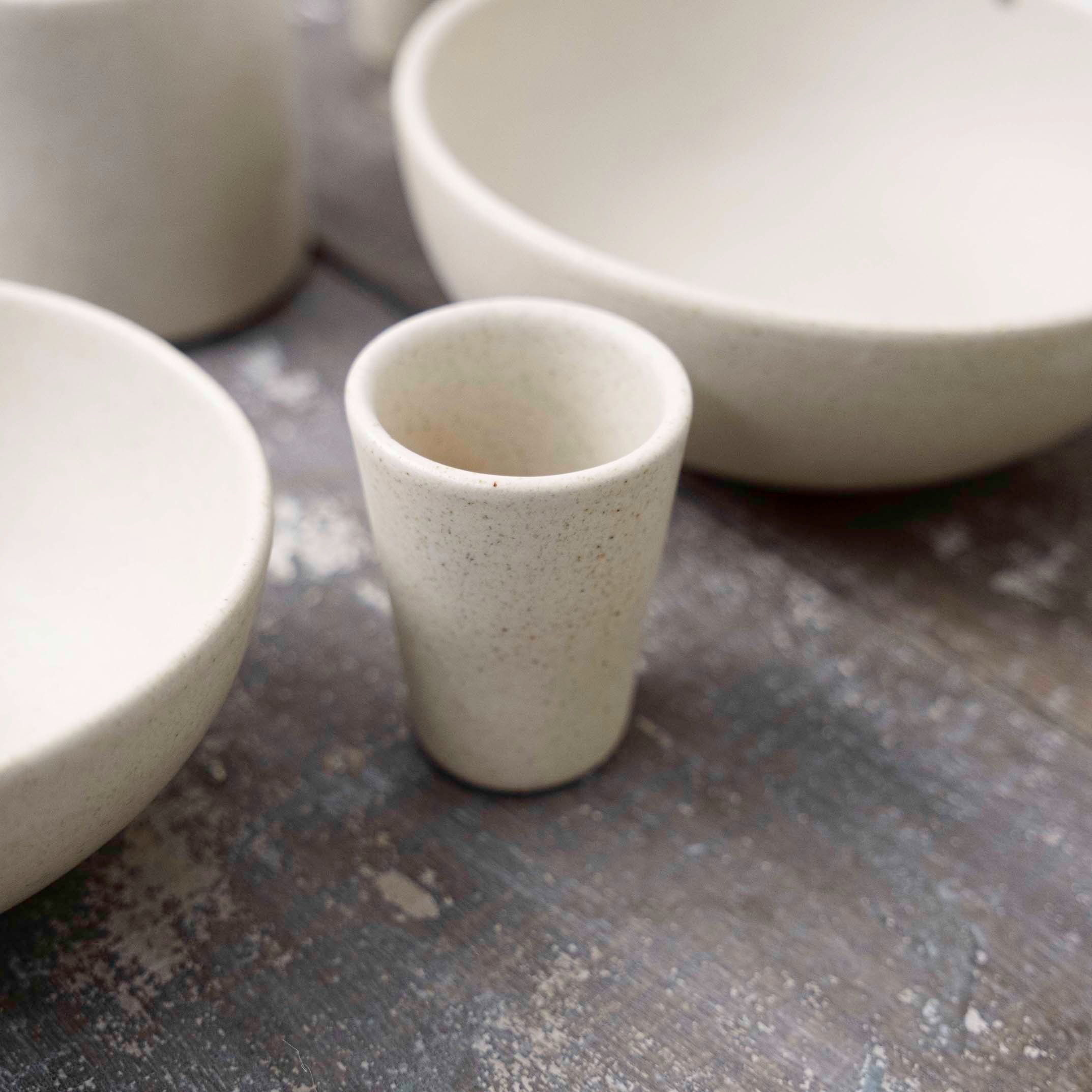 Σφηνοπότηρο φτιαγμένο στο χέρι από stoneware πηλό. Ψήνεται στους 1270 °C με αποτέλεσμα να αποκτά μεγάλη αντοχή και να είναι 100% food-safe.